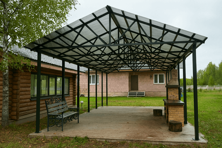 Существует множество вариантов и видов двухскатных навесов — от простых конструкций до архитектурно сложных решений. Мы выполняем строительство навесов с учетом всех технических особенностей, включая снеговые и ветровые нагрузки. Навес под двухскатную крышу — это не только функциональность, но и долгий срок службы.